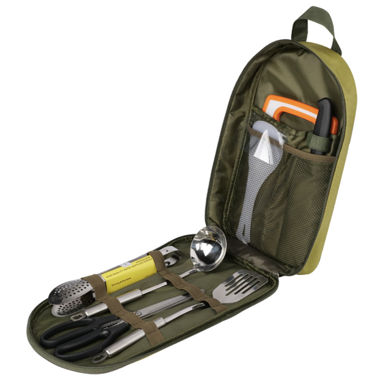 Multiple interior pockets and elastic loops keep all tools securely in place, including cooking utensils, cutlery, and small accessories, ensuring nothing gets lost in transit.